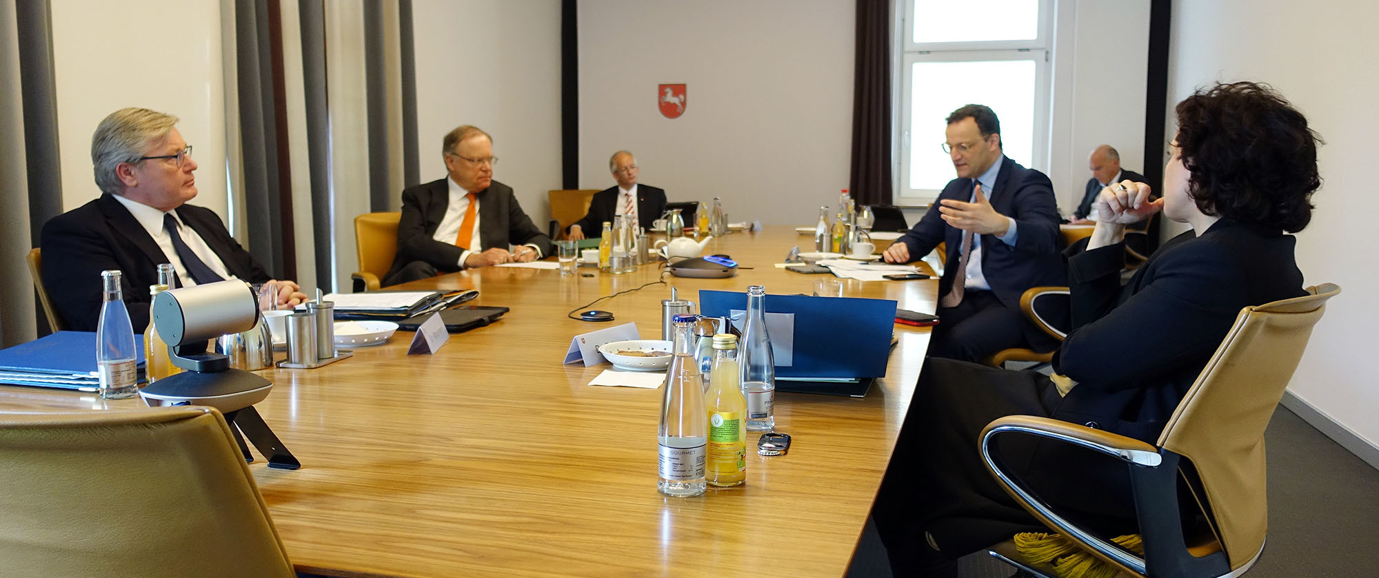 Bundesgesundheitsminister Jens Spahn war am Dienstag, 28. April 2020, zu Gast in Niedersachsen. Nach einer gemeinsamen Kabinettssitzung in der Staatskanzlei und einer anschließenden Pressekonferenz besuchte er mit Ministerpräsident Stephan Weil im Anschluss die Medizinische Hochschule Hannover. Dort informierten sie sich über die Forschung an Impfstoffen gegen das Coronavirus und die aktuelle Lage der Klinik.