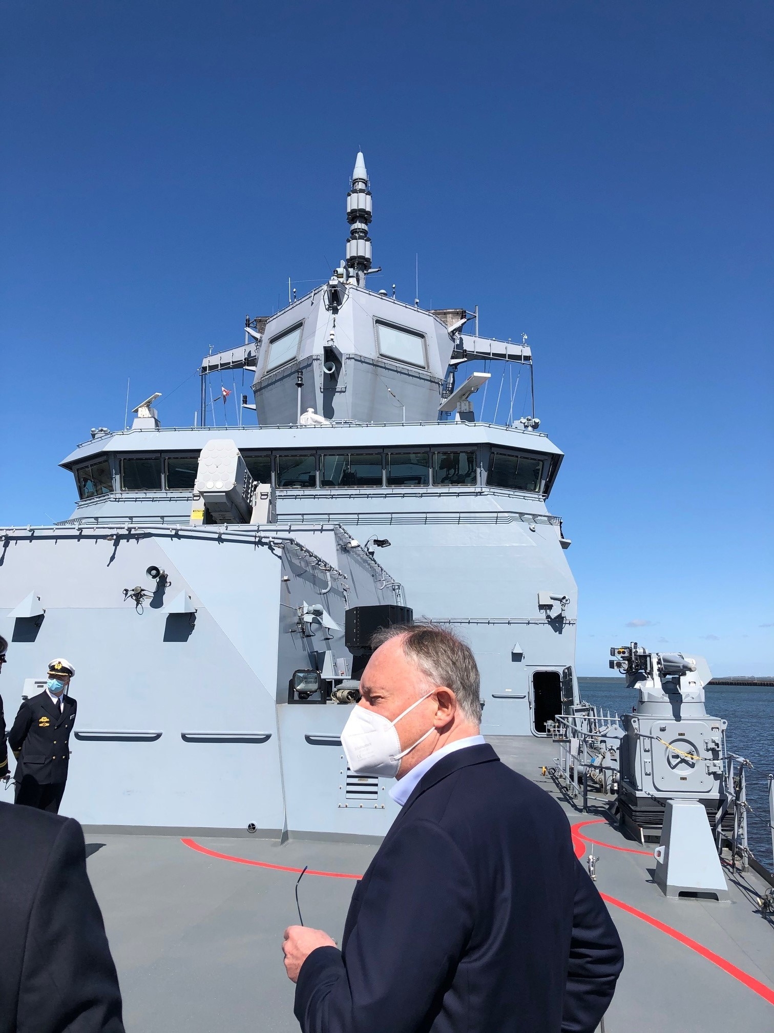 An Bord der Fregatte Sachsen-Anhalt hat Ministerpräsident Stephan Weil am 24. April 2021 Einblicke über die vielfältigen Einsätze der Marine rund um den Globus erhalten. „Besonders gefreut hat mich, dass in ein paar Jahren endlich wieder eine Fregatte mit dem schönen Namen "Niedersachsen" vom Stapel laufen wird. Niedersachsen und Wilhelmshaven sind schließlich das Zentrum der Bundesmarine“, so der Ministerpräsident bei dem Besuch der Einsatzflottille 2 am Marinestützpunkt Wilhelmshaven.