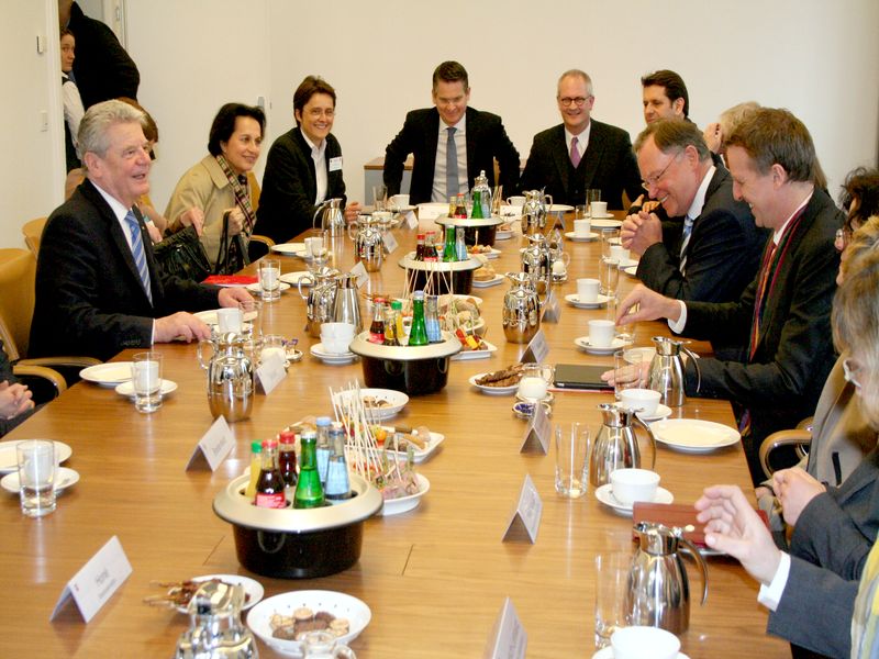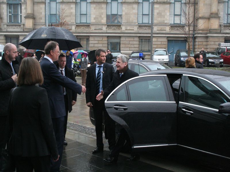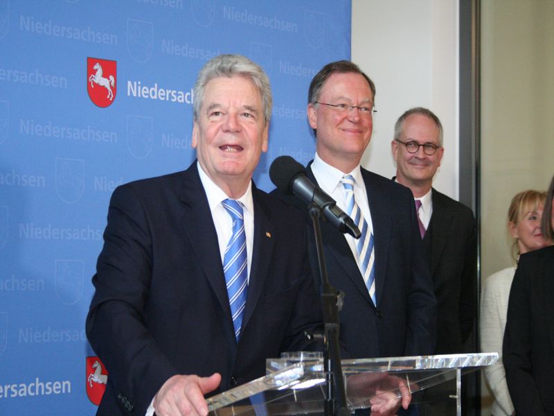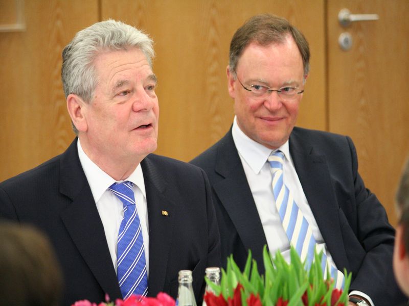 Gelöste Stimmung: Bundespräsident Gauck nimmt an der Kabinettssitzung in der Niedersächsischen Staatskanzlei teil.