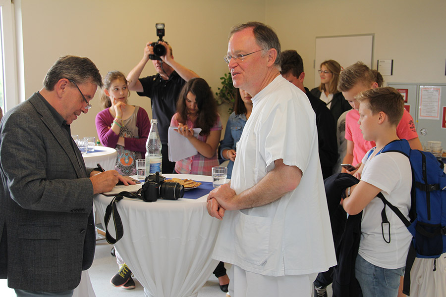Weil bedankte sich in dem Abschlussgespräch sehr bei den Mitarbeiterinnen und Mitarbeitern der Klinik. Er zeigte sich beeindruckt von dem großen Einsatz aller Pflegerinnen und Pfleger, sowie des ärztlichen Personals, die allesamt mit großer Freundlichkeit und Zugewandtheit sehr anstrengende und sehr fordernde Aufgaben bewältigten. Insbesondere im Pflegebereich würde, so Weil, die schwere Arbeit leider nicht gut genug bezahlt. Weil versprach, sich in den kommenden Monaten auch weiterhin für eine zumindest auskömmliche Krankenhausfinanzierung einzusetzen, im Moment sei man davon in Deutschland bedauerlicherweise noch weit entfernt.