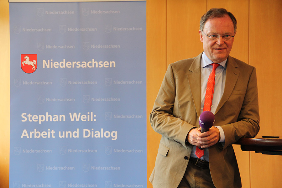 Am Abend fand eine weitere Dialogveranstaltung mit Bürgerinnen und Bürgern aus Stade und Umgebung im Stadeum statt. Ministerpräsident Weil stellte sich allen ihm gestellten Fragen stellen, nahm Kritik und Anregungen entgegen und erläuterte die Politik der Niedersächsischen Landesregierung. Schwerpunkte bildeten die Themen Schule und Bildung sowie Soziales. Darüber hinaus wurden andere Bereiche wie Elbvertiefung, Fracking oder Migrationspoltik diskutiert.