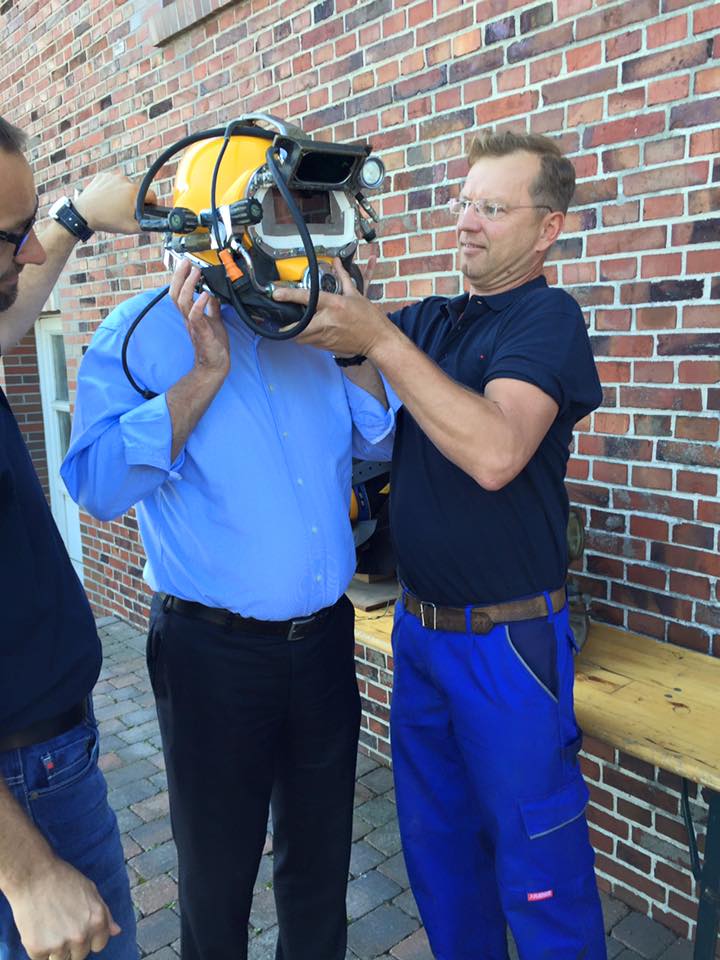 Ministerpräsident Stephan Weil hat am 7. September 2016 eine weitere Station in der Reihe „Stephan Weil: Arbeit und Dialog“ absolviert. Dieses Mal war er bei NiedersachsenPorts (NPorts) in Emden zu Gast und absolvierte dort ein dreistündiges Kurzpraktikum – samt Tauchgang, wenn auch nur als Begleiter über Wasser.