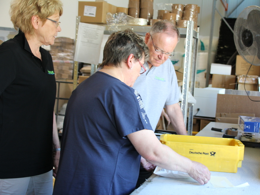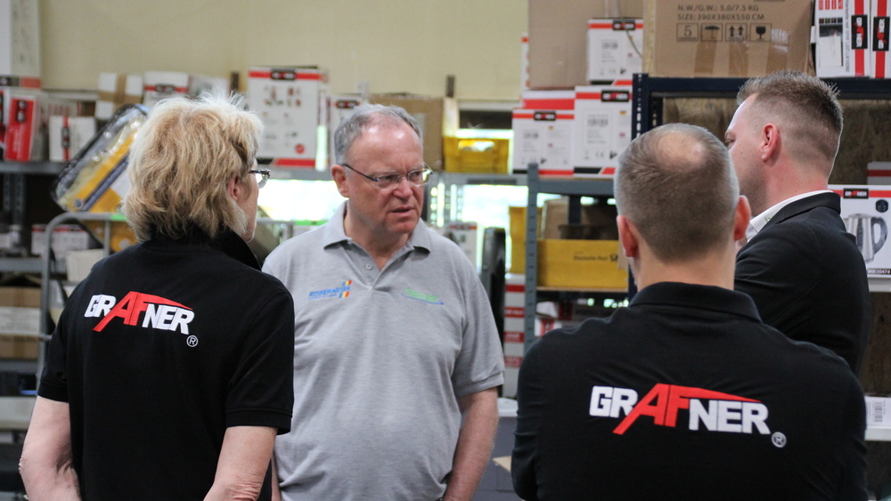 Dass er jedenTag eine neue Idee habe, hat Geschäftsführer Martin Zienau gleich bei der Begrüßung von Ministerpräsident Stephan Weil erzählt. Das familiengeführte Unternehmen Heuer vertreibt über 3.000 verschiedene Artikel aus den Bereichen Haushalt, Garten, Werkzeug und Spielzeug über das Internet. Rund 20 Mitarbeiterinnen und Mitarbeiter sorgen dafür, dass die Bestellungen bearbeitet, kommissioniert und noch am selben Tag versandt werden. Für den Händler ist es aber nicht einfach, sich gegenüber der Konkurrenz aus Asien durchzusetzen, wie Stephan Weil bei seinem Arbeitseinsatz als Lagerarbeiter Mitte Juni im Rahmen der Veranstaltungsreihe „Arbeit und Dialog“ erfuhr. Gute Qualität, Schnelligkeit, zertifizierte Waren und ein guter Kundenservice sind unabdingbar für den 2013 gegründeten Onlinehandler. Eine gute Breitbandverbindung, wie sie derzeit in Uelzen ausgebaut wird, ist ein weiterer wichtiger Standortvorteil. Beim Einsortieren der Waren in die Hochregale erfuhr Stephan Weil zudem, dass es für Heuer immer schwieriger wird, zuverlässiges Personal zu finden.