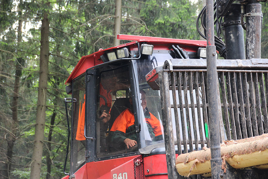 Anschließend durfte Weil mit den Holzernte-Maschinen Harvester und Forwarder das Holz bearbeiten und zum Waldweg transportieren. Das Baumfällen und das Bedienen der großen Maschinen haben ihm größtes Vergnügen bereitet!