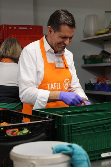 Am 15.Oktober 2025 tauschte Ministerpräsident Olaf Lies Anzug gegen Schürze und wurde Teil des Teams der Holzmindener Tafel. Von nun an standen Sortieren, Packen und die Ausgabe von Lebensmitteln auf dem Programm. Schnell wurde klar: Hier geht es nicht nur um Lebensmittel oder Kleidung, sondern auch um Gemeinschaft, Wertschätzung und Hoffnung.