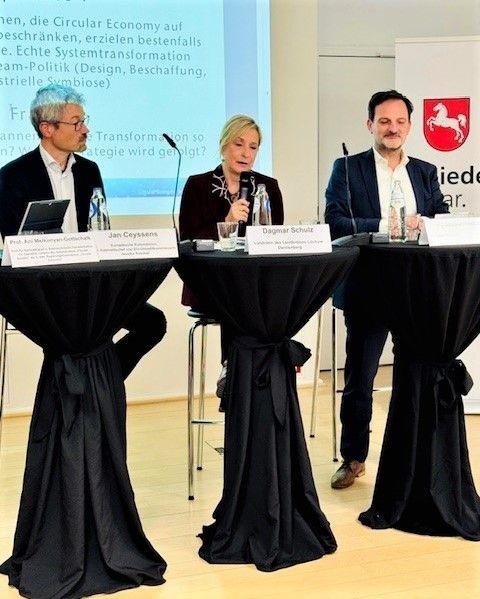 Im Rahmen der Veranstaltungsreihe: „Niedersachsen: Schlüsselregion für Transformation“ fand am 10. Dezember 2025 die Veranstaltung Circular Society & Circular Economy statt. Die niedersächsische Europaministerin Melanie Walter betonte in ihrer Eröffnungsrede, dass Transformation vor Ort beginne. Wie kann die Transformation einer linearen in eine zirkuläre Wirtschaft erfolgreich umgesetzt werden? Diese und andere Fragen diskutierten Professorin Melanie Jaeger-Erben (BTU Cottbus – Senftenberg), Jan Ceyssen (Europäische Kommission, Kabinett Roswall), Dagmar Schulz (Landrätin Lüchow-Dannenberg) und Professorin Ani Melkonyan-Gottschalk (TU Clausthal).
