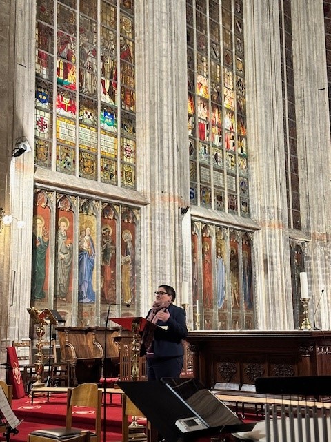 Der Kammerchor Acûstico und das Blechbläserensemble Sonus Aes, beide unter der Leitung von Julian Hauptmann, präsentierten ein facettenreiches Programm mit bekannten und weniger bekannten Weihnachtsliedern aus unterschiedlichen Ländern und Epochen. Von festlichen englischen Carols über französische Hirtenlieder bis hin zur südamerikanischen „Missa Criolla“ spannte das Konzert einen weiten musikalischen Bogen. Werke wie „Joy to the World“, romantische Chorlieder und klangvolle Arrangements für Chor und Blechbläser schufen eine Atmosphäre, die gleichermaßen besinnlich, festlich und verbindend war.