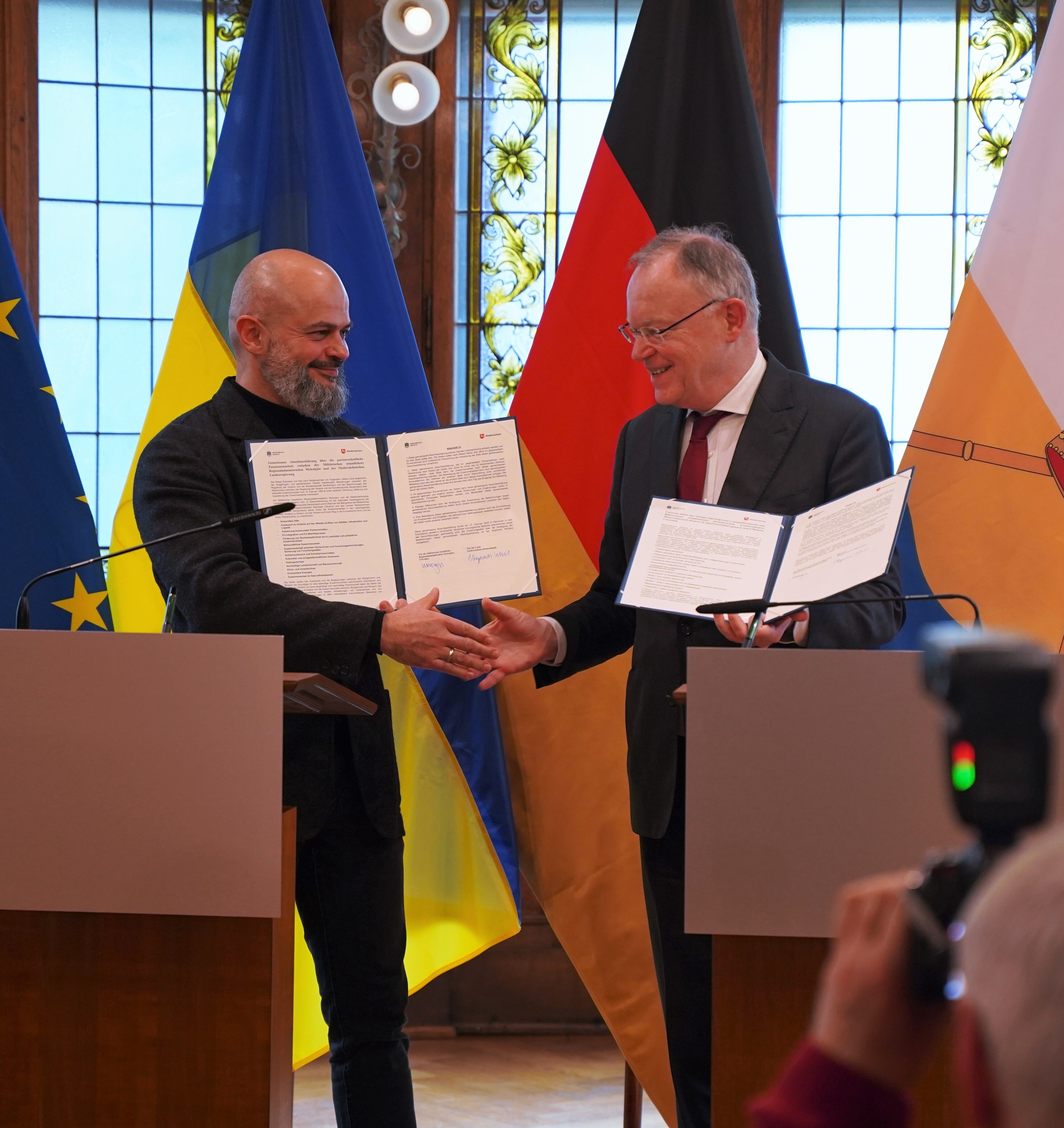 Am 19.02.2024 haben Niedersachsen und die ukrainische Oblast Mykolajiw daher eine Gemeinsame Absichtserklärung über die partnerschaftliche Zusammenarbeit (Solidaritätspartnerschaft) unterzeichnet.
