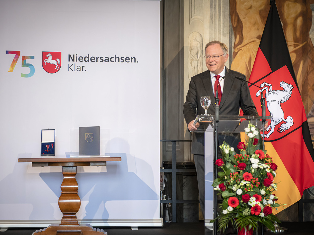 Aus Anlass von 75 Jahren Niedersachsen verleiht der Niedersächsische Ministerpräsident an Bürgerinnen und Bürger des Landes den Niedersächsischen Verdienstorden. Bei einem kleinen Festakt am Montag, dem 23. August 2021, überreicht Ministerpräsident Stephan Weil im Galeriegebäude Herrenhausen in Hannover die Ordenszeichen an zweiundzwanzig verdiente Frauen und Männer aus allen Teilen Niedersachsens. Mit der Auszeichnung ehrt das Land das herausragende Engagement, welches auf vielfältige Weise zum Wohl der Menschen in Niedersachsen tagtäglich geleistet wird.