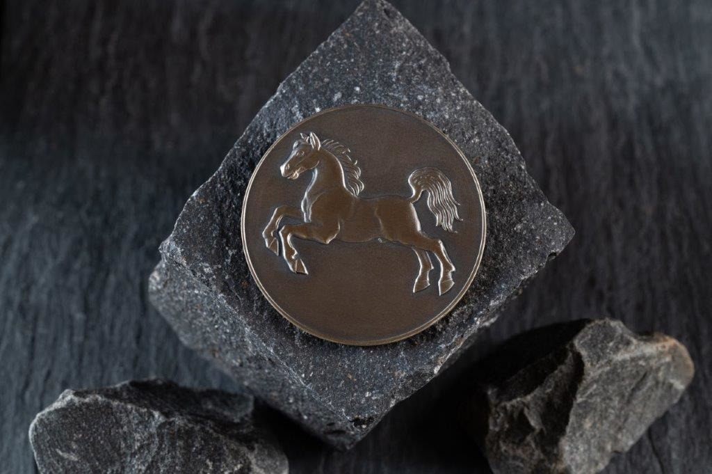 Die aus Silber gefertigte Landesmedaille zeigt auf der Schauseite das Niedersachsenross und auf der Rückseite in einem Lorbeerkranz den Text »FÜR VERDIENSTE UM NIEDERSACHSEN«.