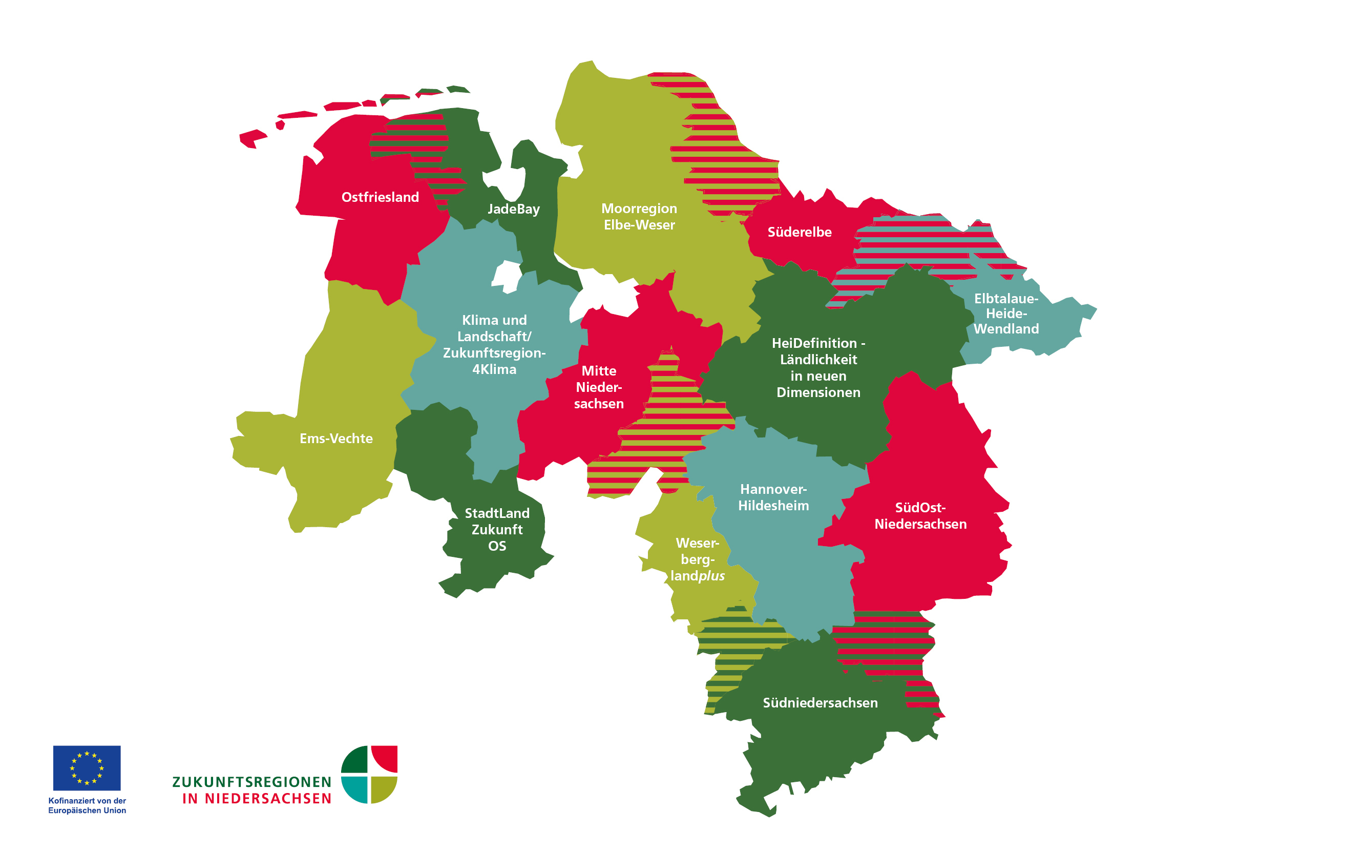 Zu den Zukunftsregionen in Niedersachsen haben sich Landkreise und kreisfreie Städte zusammengeschlossen, die gemeinsam regionale Projekte umsetzen wollen, um ihre Regionen zu stärken. Insgesamt gibt es 14 Zukunftsregionen Ziel des Programms ist es, die Regionen für aktuelle und zukünftige Herausforderungen fit zu machen.